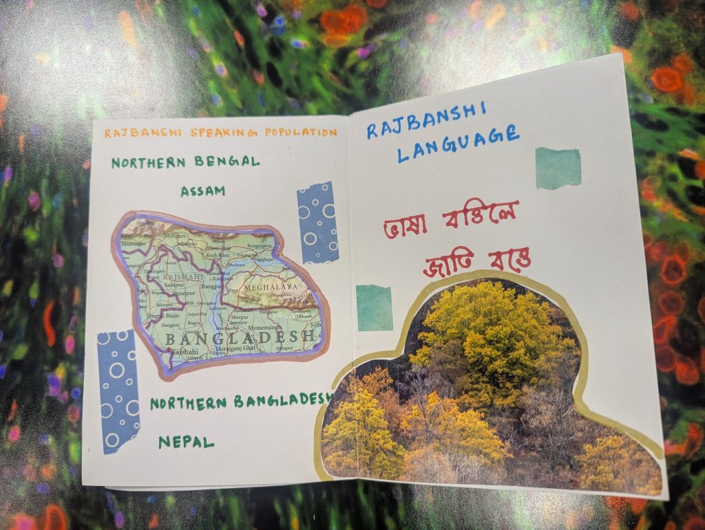 I often explore my own work through zines – interestingly folded and drawn mini-booklets. These help me to organise and show my thoughts through pictures, words, collage and colour. June 2025.